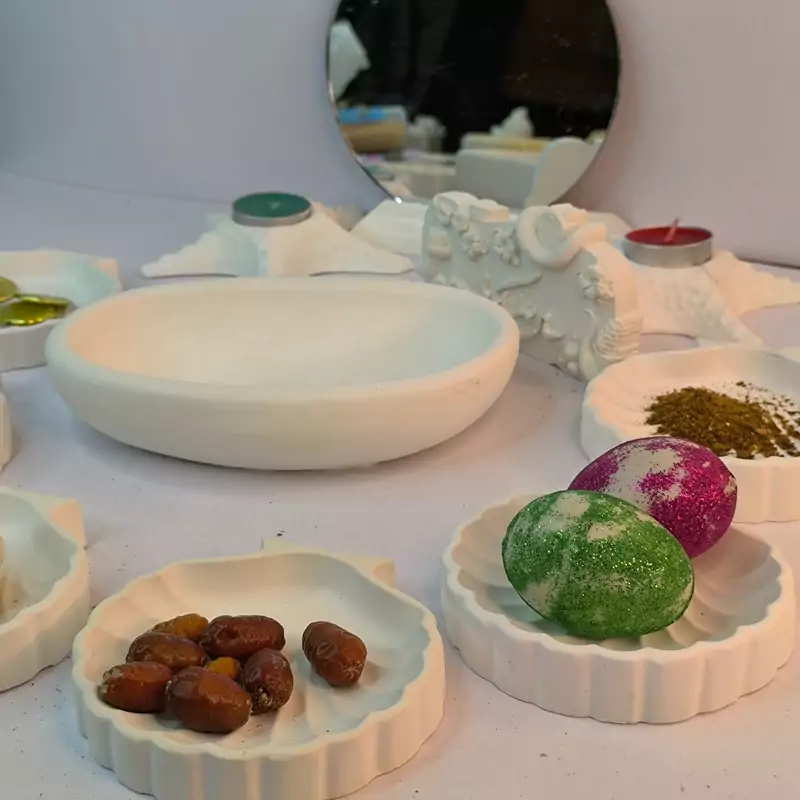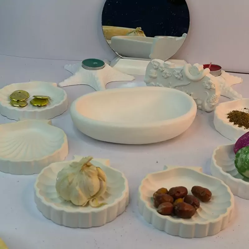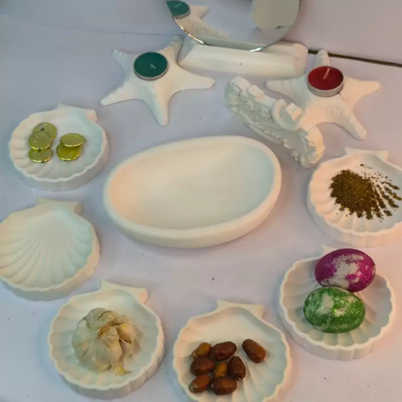 از جنس سنگ مصنوعی و طراحی شیک و مقرون به صرفه جهت سفره هفت سین و استفاده در شیپ عکاسی و همچنین ظروف پذیرایی و دکوراتیو منزل می شود از آن استفاده کرد.