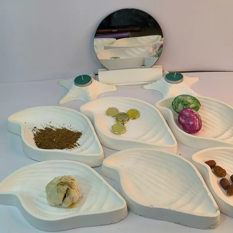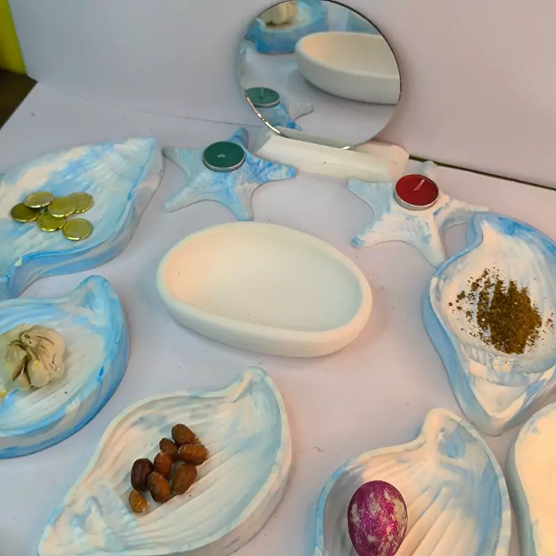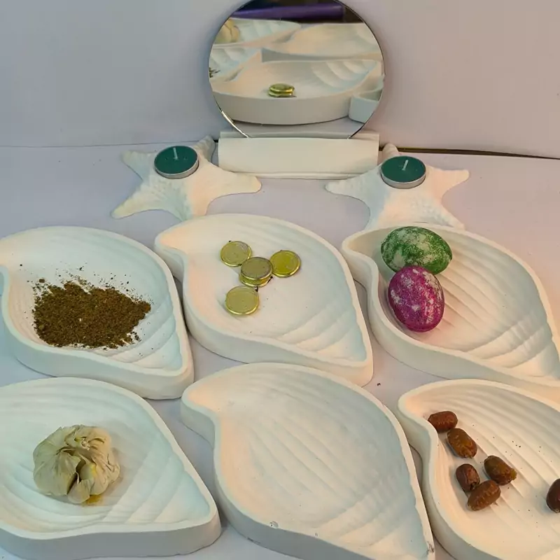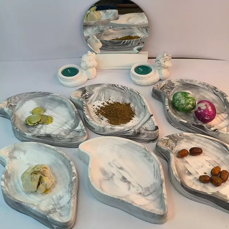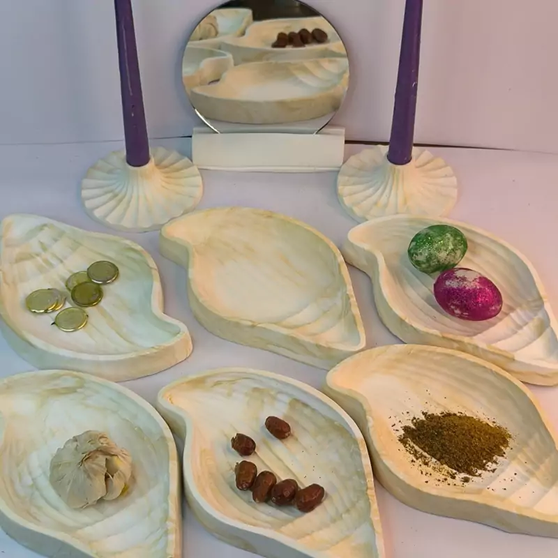 ست هفت سین نوروزی طرح صدف بلند با رنگهای جذاب که از جنس سنگ مصنوعی در کارگاه تولیدی دکوراتیو لیانا با تضمین کیفیت تولید شده است.